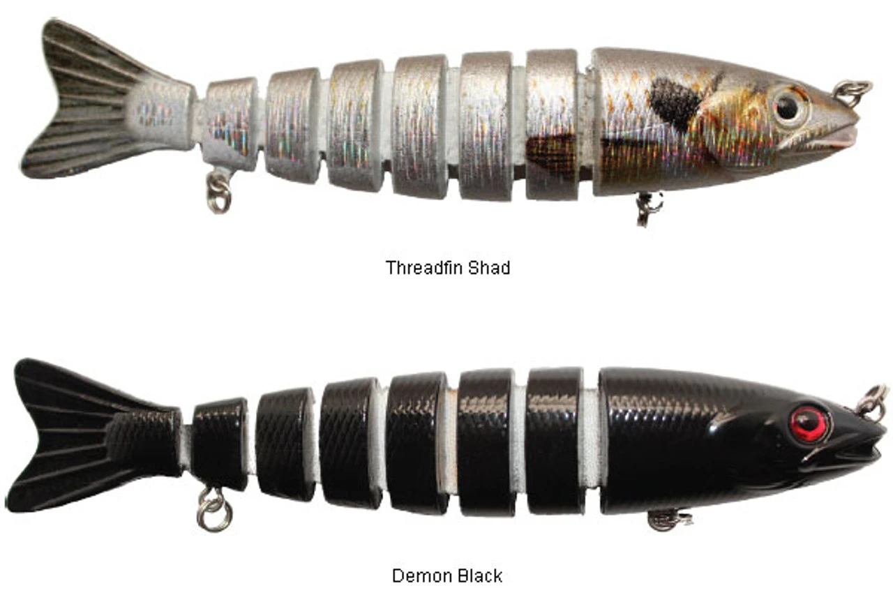 Daddy Mac Viper Minnow Lures have 7 Kevlar jointed splits, 3D eyes, and lifelike features. Epoxy coated, reflective finish, and ABS hard plastic construction.